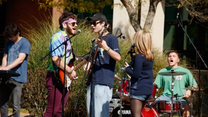 On the 27th of September in the Presidents Garden on campus, the Music Industry Club (MIC) held a performance event on a hot, clear day at 2pm. Students sat and enjoyed a variety of different genres including rap, rock, and lyrical music. The event drew the attention of different campus tour groups and other students due to the convenient location. Covers and original songs were performed by five different artists, Anonymous Prxs, Buffalo Joe and the Hobos, Subphren, Omyügen, and theshufflingyeti. Each artist hopes to perform at more events both on and off campus during the school year.